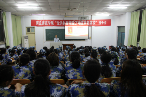 为深入学习贯彻习近平新时代中国特色社会主义思想和党的十九大精神,9月24日,人文学院在睢阳校区举办“党的创新理论万场宣讲进高校”报告会。人文学院2019级新生300余人现场聆听。